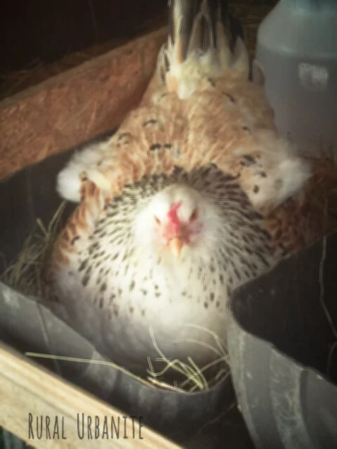 Lucille II The Easter Egger. Brooding. Sitting on Her Clutch of Eggs. Our First Chickens Conceived, Born, and Raised on The Farm!